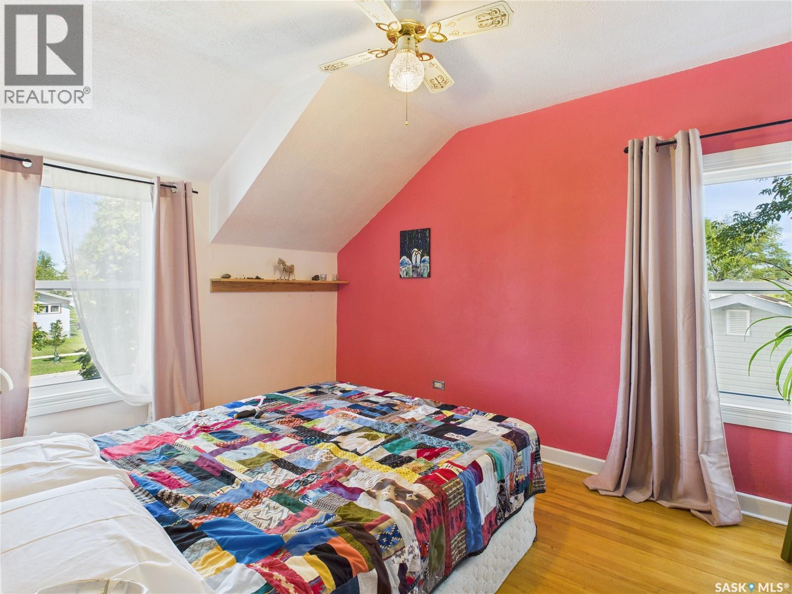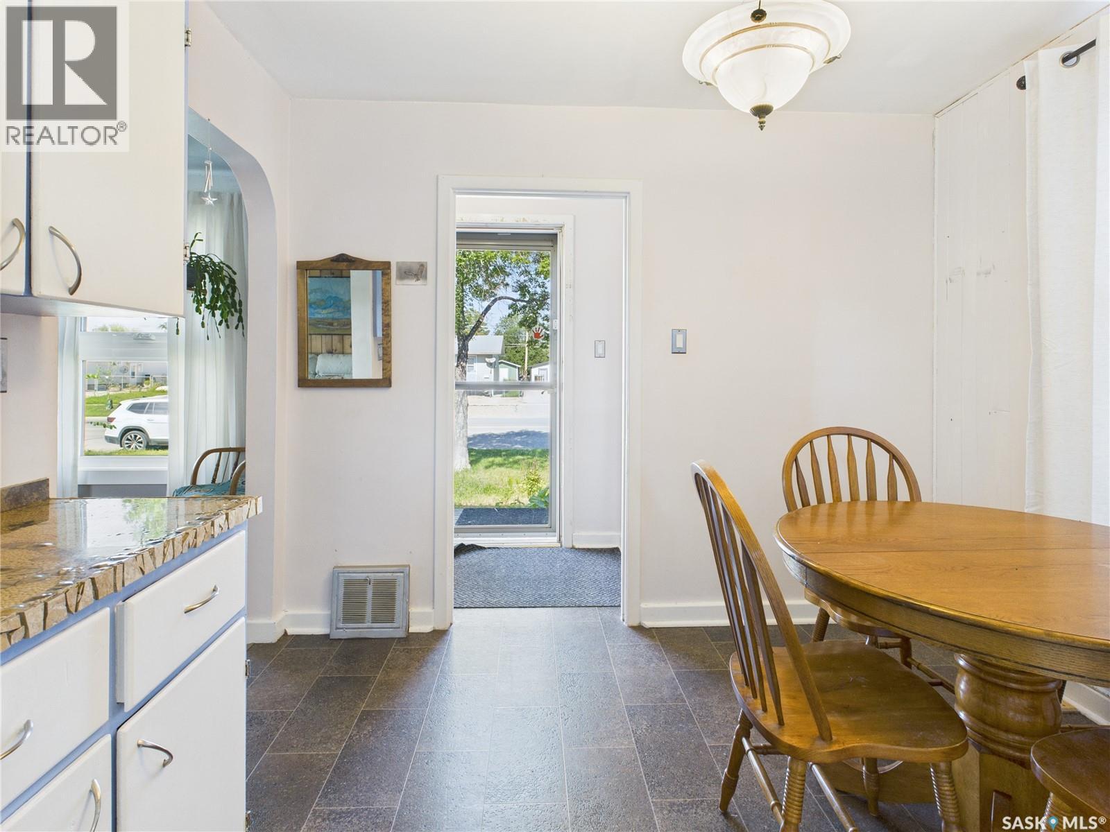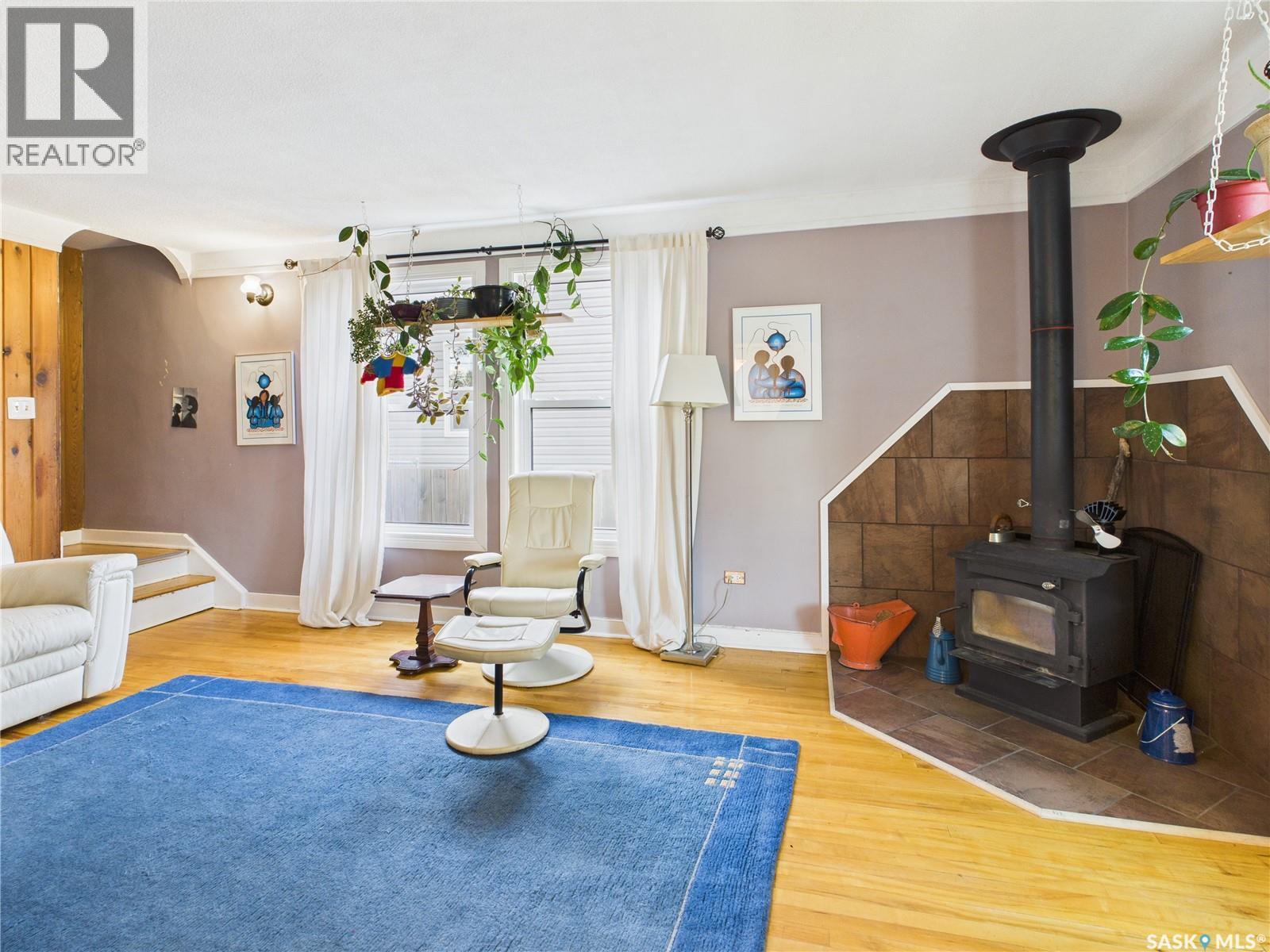 This charming 1 ¾ storey home in Westview is full of character, charm and warmth. With three bedrooms upstairs and 885 square feet of smartly designed living space, it’s the perfect fit for anyone wanting both charm and practicality. The main floor features arched doorways, hardwood floors in the living room, and a peek-through from the kitchen to the dining room that makes entertaining feel easy and connected - not to mention the wood stove for snuggling up on cold winter nights! Many of the windows have been upgraded in recent years, with the most recent being the living room window installed this spring. The large bathroom has all newer features, plus plenty of space to get ready each morning. Outside, the fully fenced yard is surrounded by mature trees and colourful wildflowers in the front garden, along with garden beds ready for herbs, vegetables, or more flowers. The location is ideal for those who love the outdoors, with the Rotary Trail just steps away for morning walks or evening bike rides. It also offers a quick and convenient commute to the Saskatchewan Penitentiary, making it an excellent option for those relocating to work there. With its character details and smart layout, this move-in ready (and oh-so-sweet!) home is ready to welcome its next owner. (id:4069)