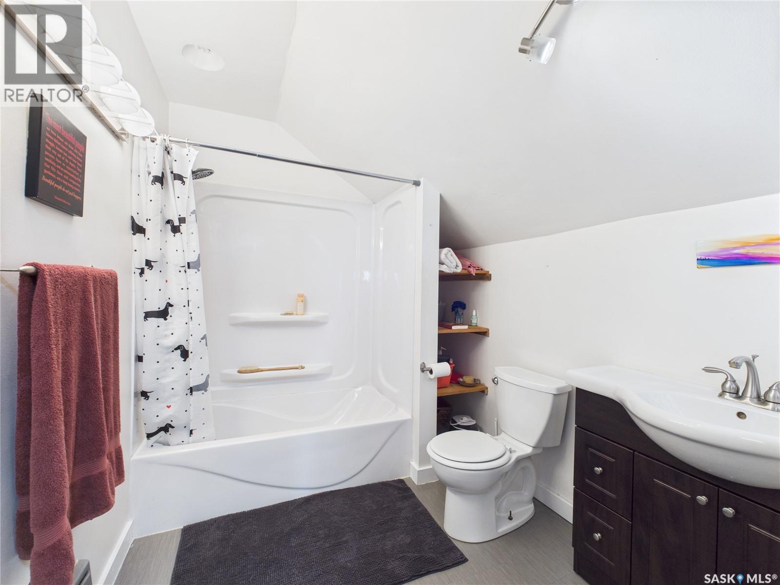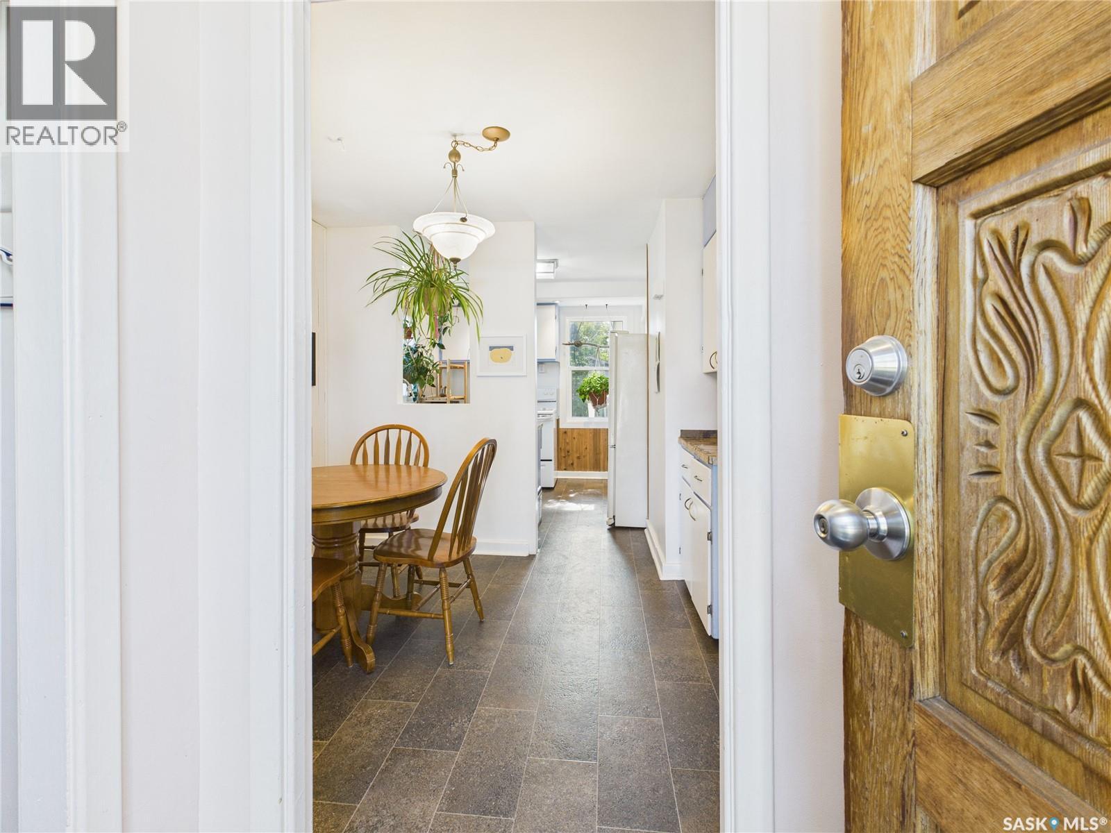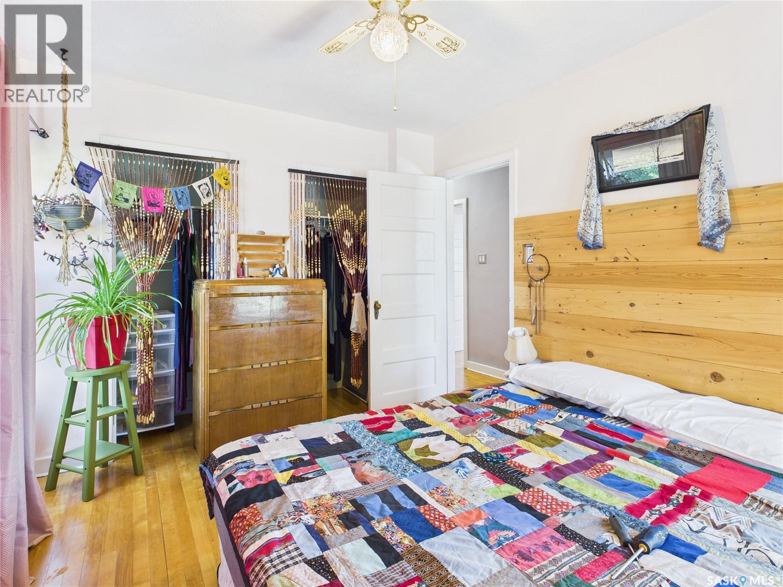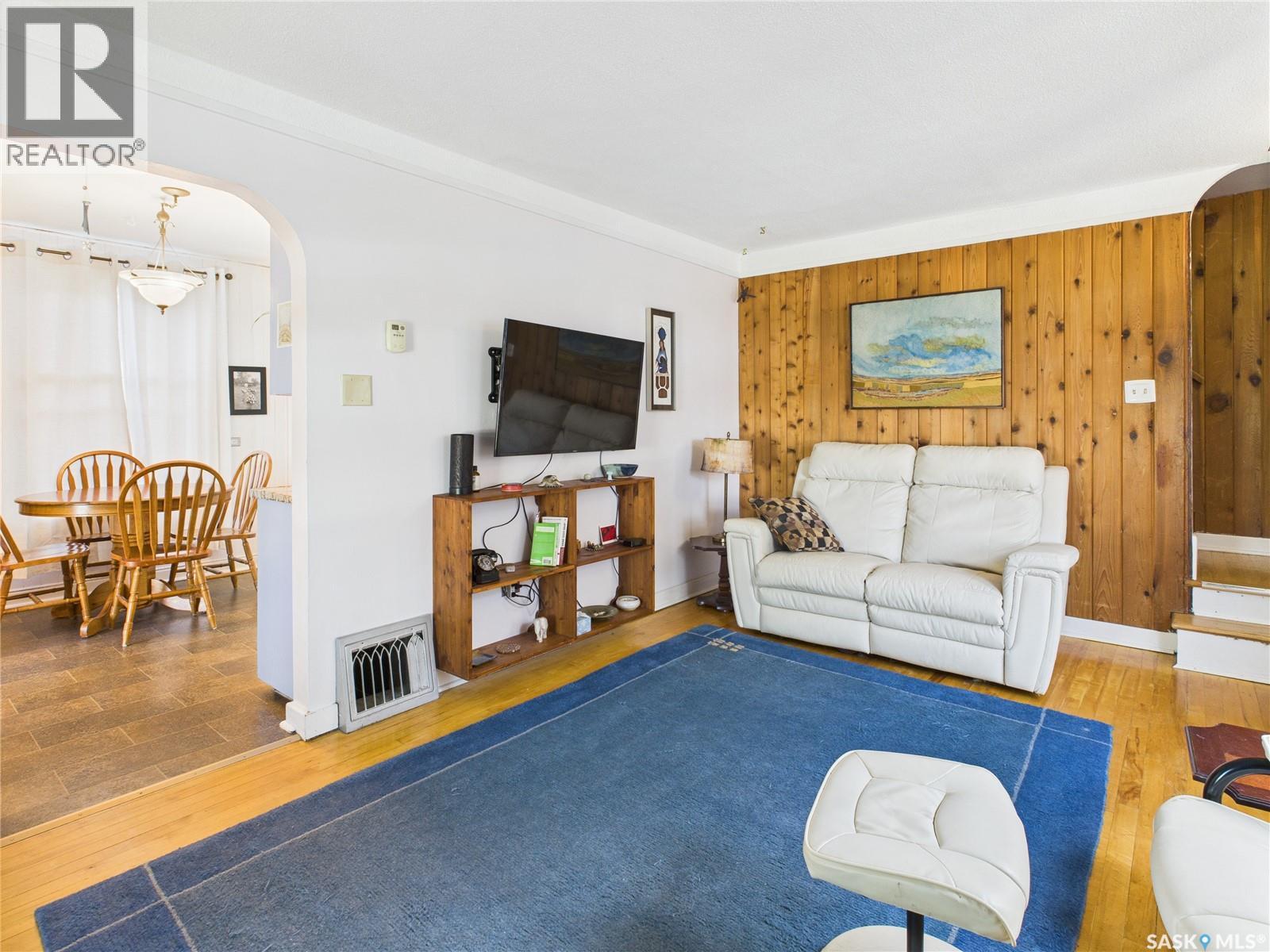 This charming 1 ¾ storey home in Westview is full of character, charm and warmth. With three bedrooms upstairs and 885 square feet of smartly designed living space, it’s the perfect fit for anyone wanting both charm and practicality. The main floor features arched doorways, hardwood floors in the living room, and a peek-through from the kitchen to the dining room that makes entertaining feel easy and connected - not to mention the wood stove for snuggling up on cold winter nights! Many of the windows have been upgraded in recent years, with the most recent being the living room window installed this spring. The large bathroom has all newer features, plus plenty of space to get ready each morning. Outside, the fully fenced yard is surrounded by mature trees and colourful wildflowers in the front garden, along with garden beds ready for herbs, vegetables, or more flowers. The location is ideal for those who love the outdoors, with the Rotary Trail just steps away for morning walks or evening bike rides. It also offers a quick and convenient commute to the Saskatchewan Penitentiary, making it an excellent option for those relocating to work there. With its character details and smart layout, this move-in ready (and oh-so-sweet!) home is ready to welcome its next owner. (id:4069)